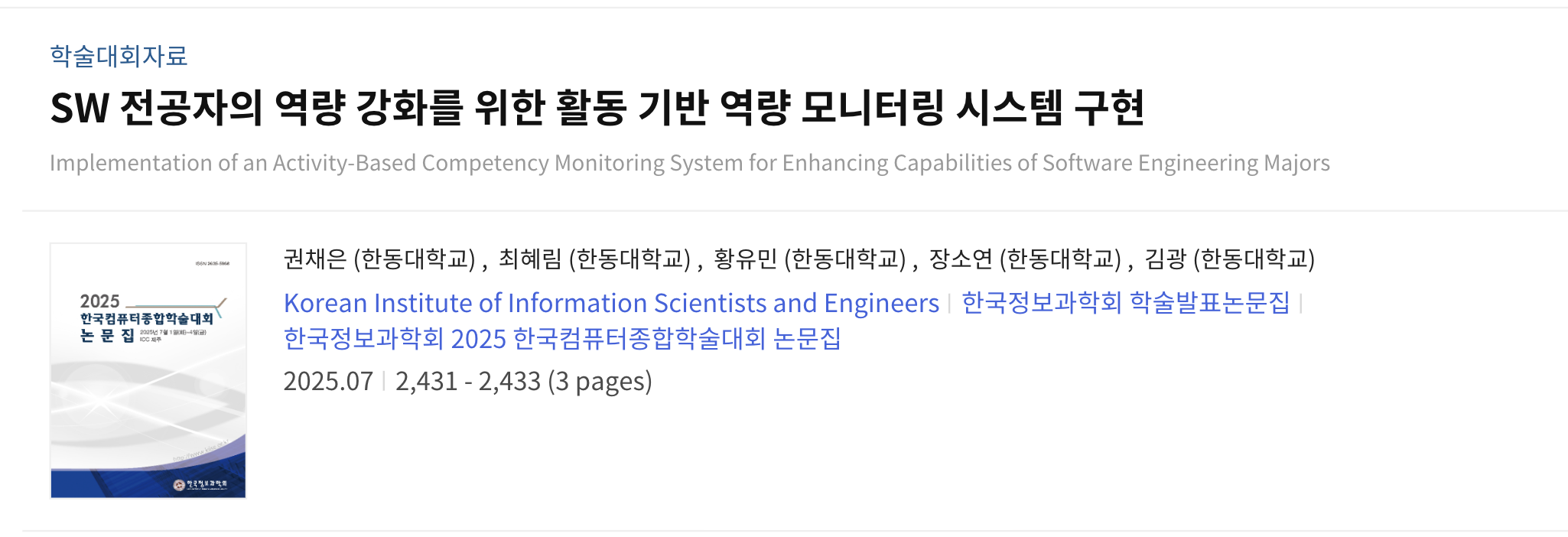 서비스를 개발하면서 연구한 역량 분석 과정그리고 이러한 아카이빙 서비스가 학생들에게 어떤 도움을 줄 수 있는지에 대한 결과들을 토대로 논문을 작성했습니다.